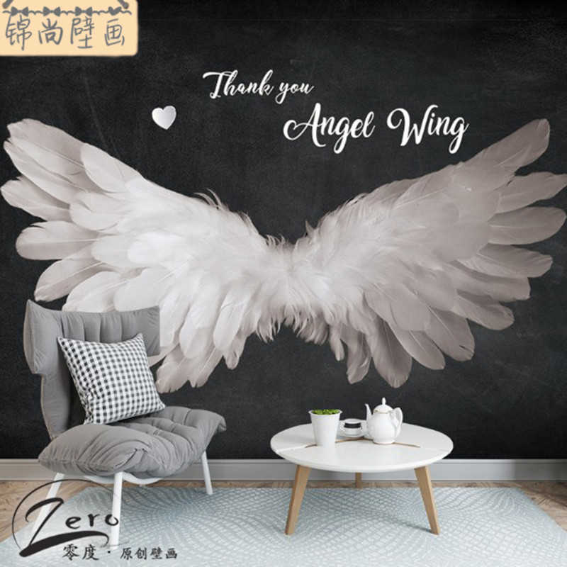 現貨3d白色羽毛天使翅膀壁紙網紅美發店拍照背景墻奶茶店墻紙舞蹈室 露天拍賣