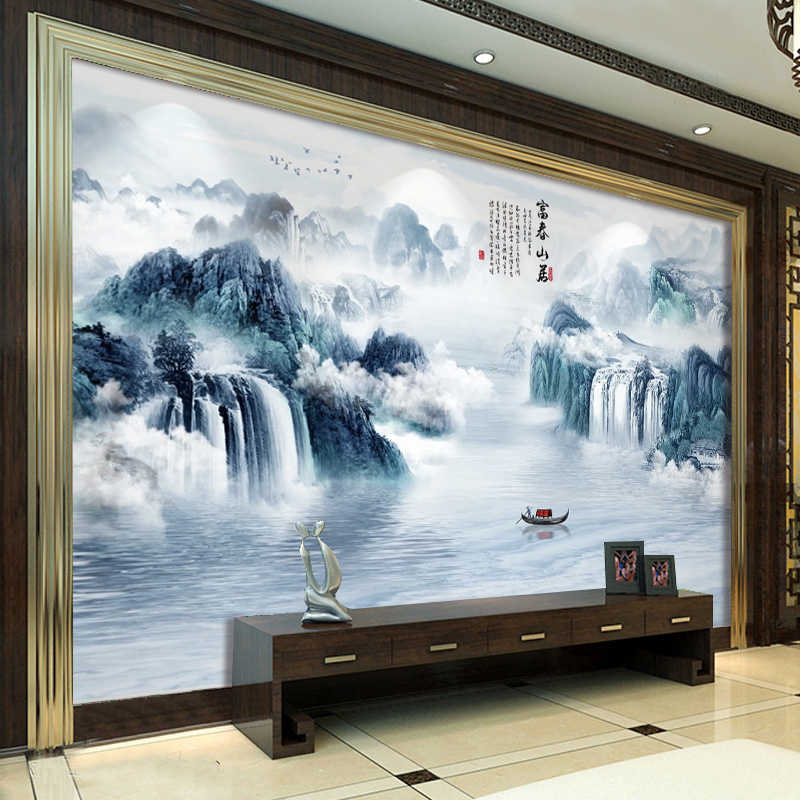 花恋香中式电视背景墙壁画山水画壁纸富春山居图装饰画5d立体影视墙布8d浮雕墙纸客厅沙发无缝宣绒布 平方米 图片价格品牌报价 京东